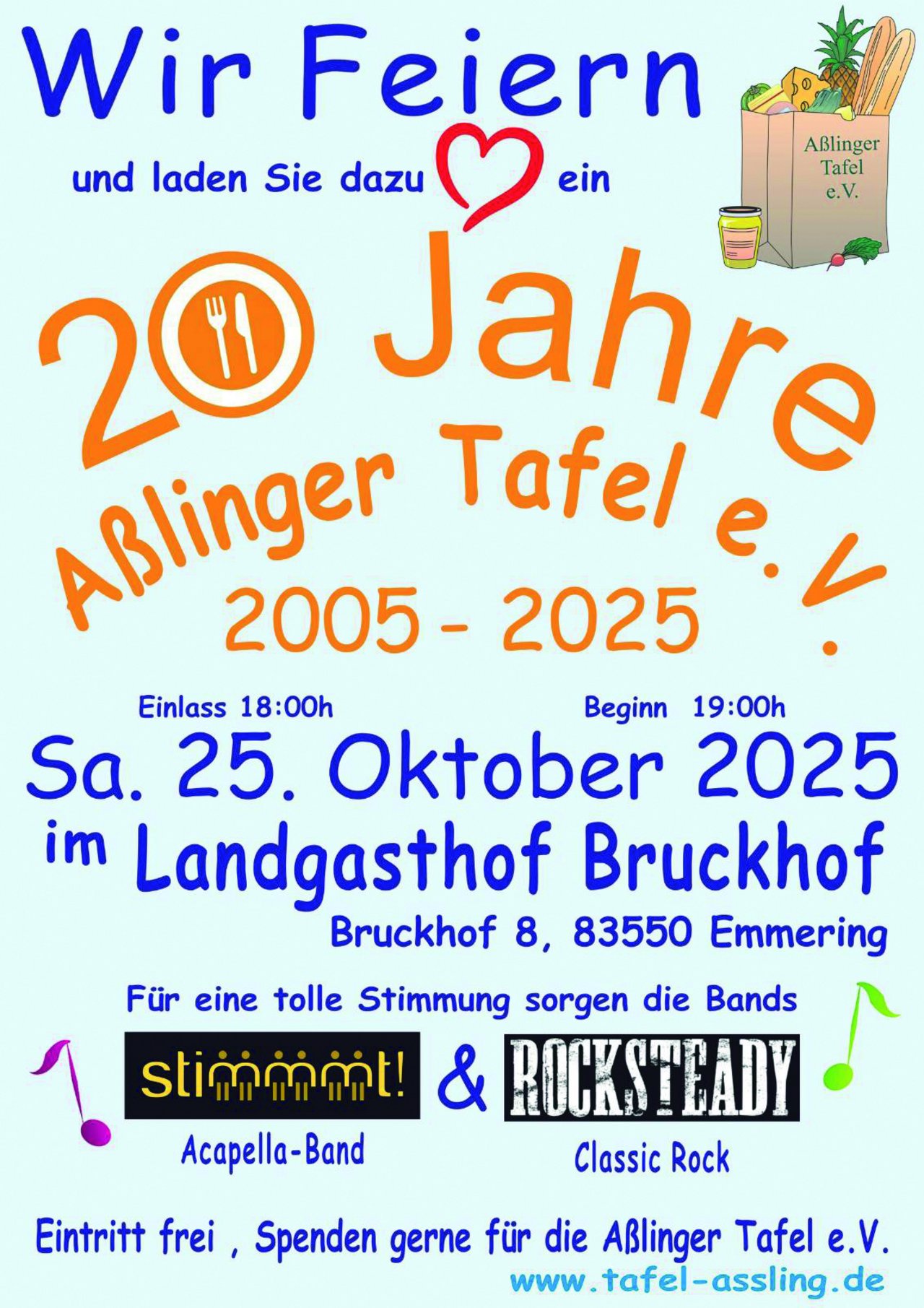 Jedes Jahr wandern riesige Mengen an Lebensmitteln aus den Supermärkten und weiteren Lebensmittelgeschäften direkt in die Tonnen, obwohl sie qualitativ noch einwandfrei sind. Die Tafeln wollen dieser Verschwendung entgegenwirken und mit den geretteten Lebensmitteln gleichzeitig bedürftige Mitbürger unterstützen. Mit ihrem Netz an ehrenamtlichen Mitarbeitern und großzügigen Unterstützern versorgt die Aßlinger Tafel bereits seit 2006 Bürger in und um Aßling mit Lebensmitteln.